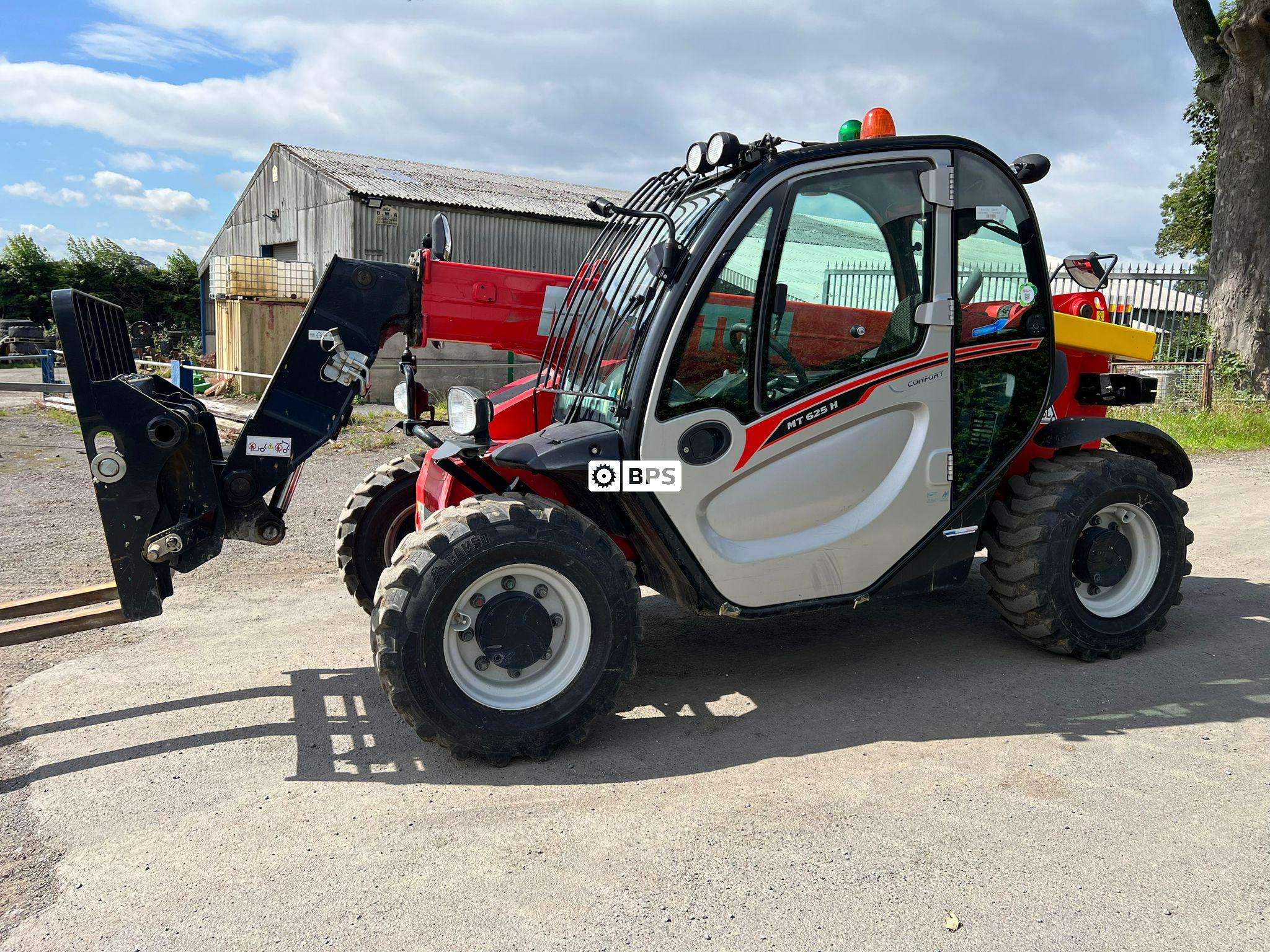 Model year 2019. Hour clock reads 4278 hours. This machine is complete with a 55kw engine, sway, fork positioner, auxiliary line, rear camera, joystick control, air conditioning, keypad immobiliser and a green beacon. 50% tyres.