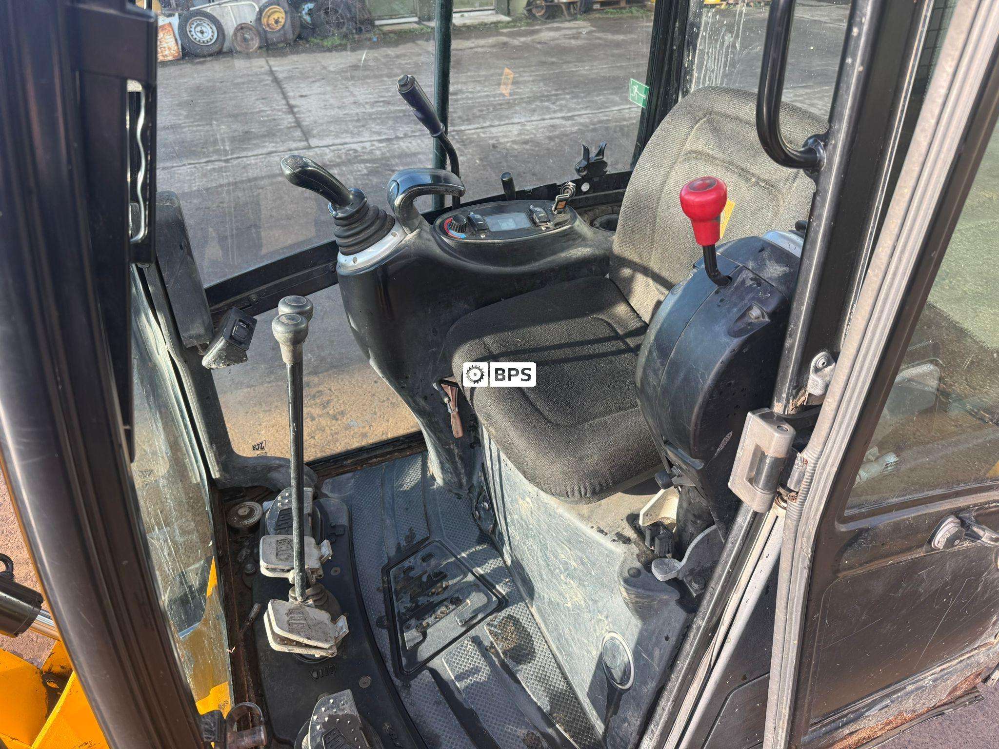 Model year 2017. Hour clock reads 2268 hours. This machine is complete with 2 speed tracking, expanding tracks at 70%, full cab, blade, offset, manual hitch and flashing beacon.