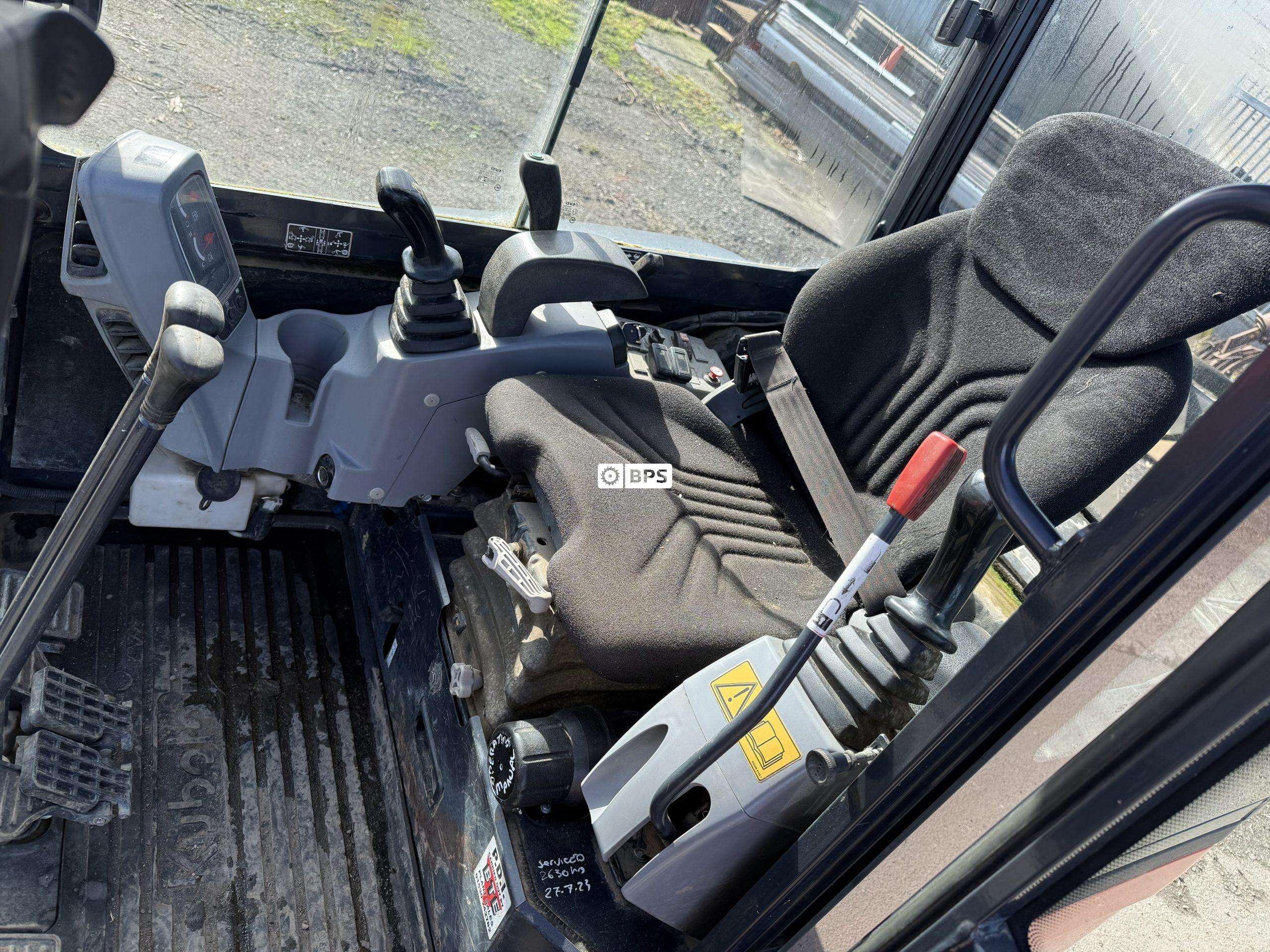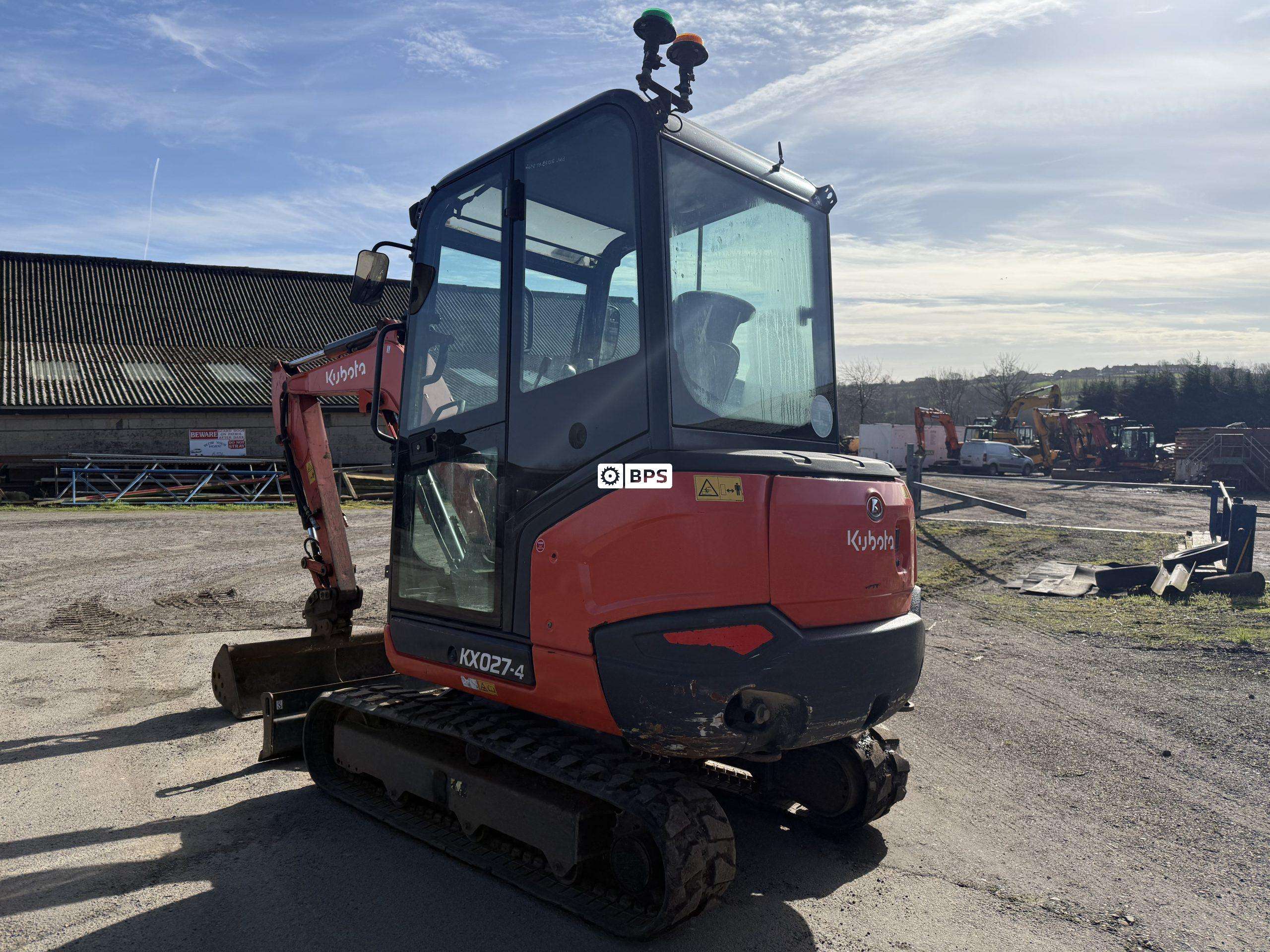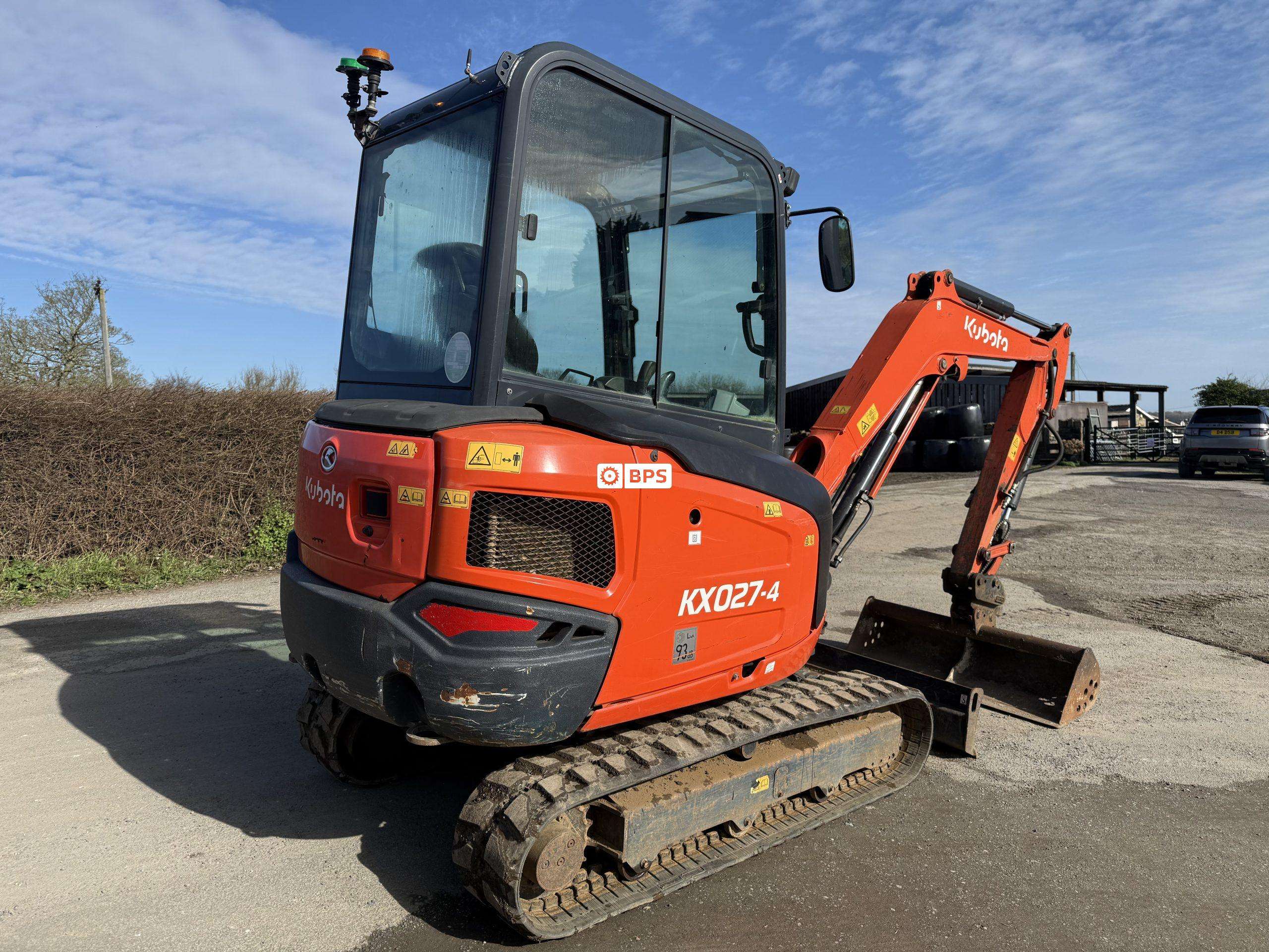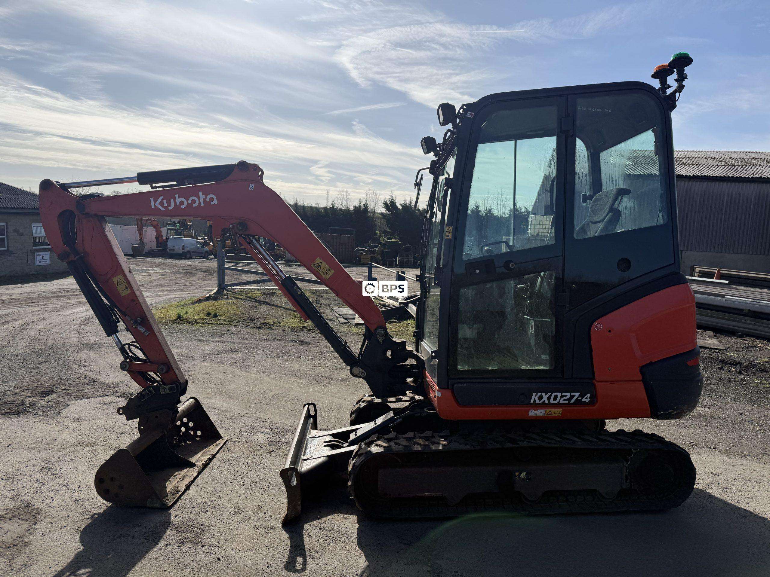 Model year 2019. Hour clock reads 3267 hours. This machine is complete with a 4 cyl engine, 2 speed tracking, blade, piped for a breaker and has a hydraulic hitch.